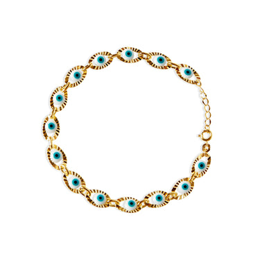 The white & blue evil eye ornate bezel anklet