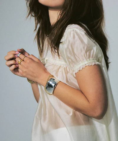 - Gold Vermeil: Thick 14k gold layer over sterling silver or brass. Keep away from water and skincare products to prevent tarnish.